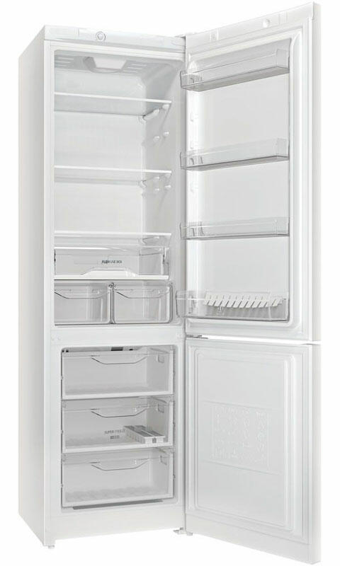 Высокая морозильная камера, в которой поместится еда для всей семьи. Белый цвет. Удобная и надежная дверная полка для хранения бутылок.