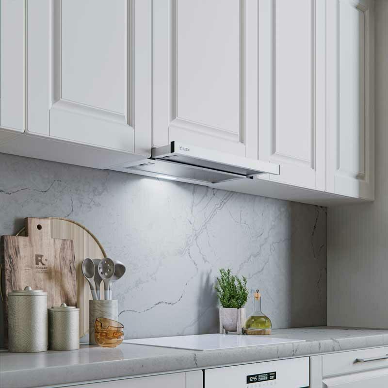 Мощная вытяжка LEX HIDE 600 быстро и почти бесшумно очистит кухню от пара и запаха. Производительность 550 м³ в час подойдет для большинства планировок. Модель имеет телескопическую конструкцию, что позволяет увеличить пропускную способность одним движением руки.