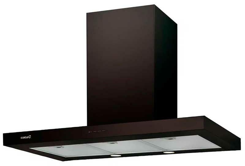 Декоративная вытяжка шириной 90 см с Т-образной формой конструкции представляет собой идеальное решение для больших и средних кухонных помещений. Изготовленная из высококачественной нержавеющей стали и покрытая чёрной термостойкой краской, она отличается прочностью и эстетичным внешним видом.