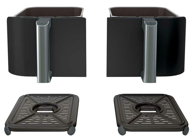 Устройство оснащено двумя отсеками для готовки общий объем которых составляет 7,6 л (3,8 литров на отсек)
