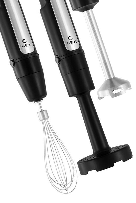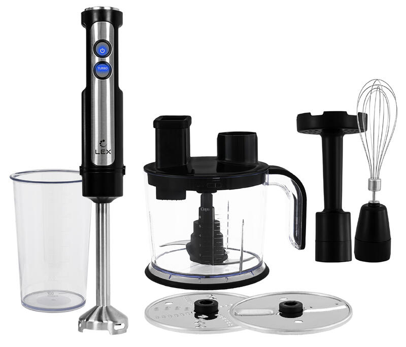 В комплекте S-образный нож комбайна, Диск для терки, Диск для шинковки, Моторная часть, Насадка для приготовления пюре, Насадка-блендер, Насадка-венчик, Погружная часть и нож