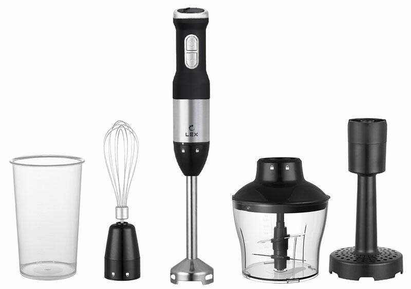 Комплектация Крышка измельчителя, Моторная часть, Насадка для приготовления пюре, Насадка-блендер, Насадка-венчик, Переходник для насадки-венчика, Чаша для измельчения