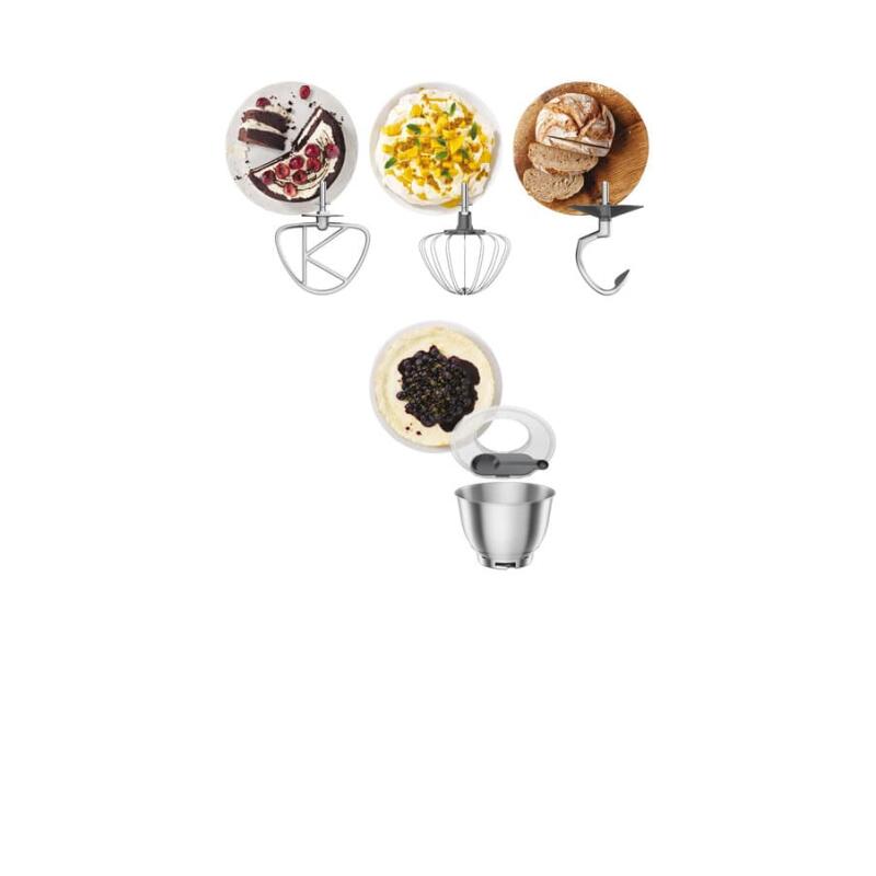 Насадки в комплекте Насадка K-Beater; Венчик; Крючок для теста; Защитная крышка от брызг; Чаша