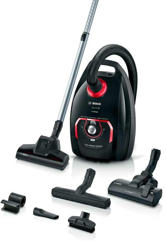 В комплекте 1 насадка для щелей, 1 универсальная насадка, 1 турбонасадка, 1 насадка для твердых полов, 1 насадка 2 в 1 (для мягкой мебели), 1 зажим для аксессуаров на трубке