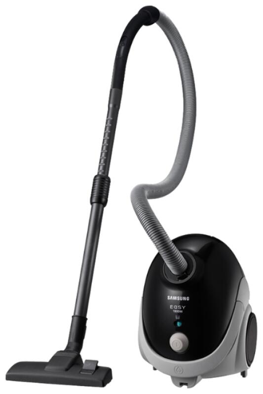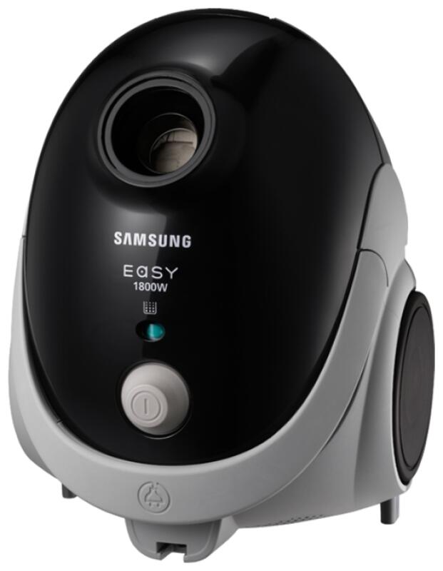 Стандартный мешковый пылесос SAMSUNG VCC5241S3K. Мощностью 1800 Вт и мощностью всасывания 410 Вт. Это очень высокая мощность всасывания при сравнительно маленьких размерах самого аппарата. Пылесос оснащен фильтром НЕРА11 и телескопической трубой всасывания.