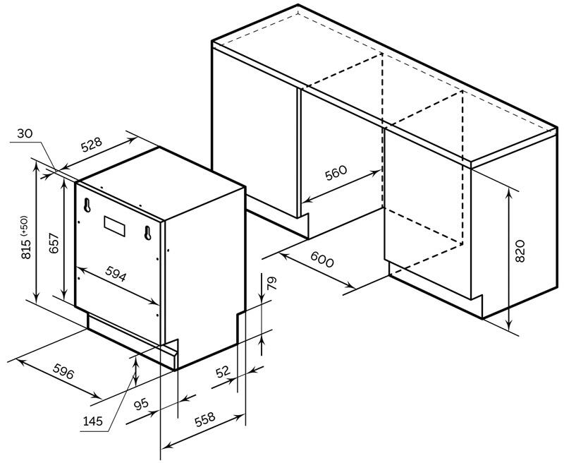 Глубина 55 см